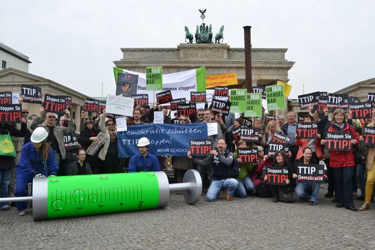 Unter dem Motto "Zivilgesellschaft macht Dampf gegen den Konzern-Deal" protestierte das Bündnis „TTIP unfairhandelbar“ gestern vor dem Brandenburger Tor in Berlin gegen die Freihandelsabkommen TTIP und CETA. Sie werden derzeit von der EU mit den USA bzw. mit Kanada ausgehandelt. Einige der geplanten Regelungen drohen Demokratie, Rechtsstaat und Verbraucherschutzrechte auszuhebeln. Das werden wir nicht zulassen!